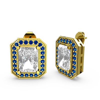 Beyaz zirkon ve lab safir 14 ayar altın küpe