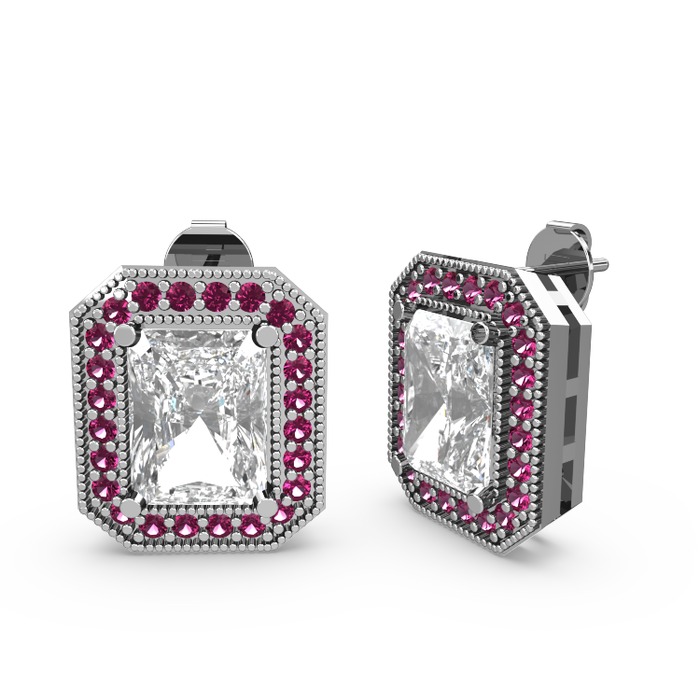 Beyaz zirkon ve rodolit garnet 14 ayar beyaz altın küpe