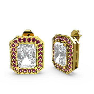 Beyaz zirkon ve rodolit garnet 8 ayar altın küpe