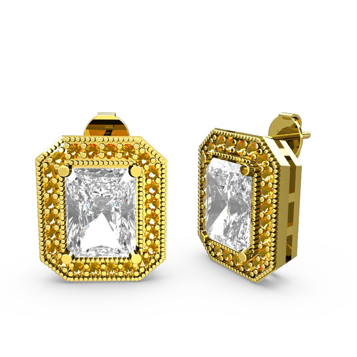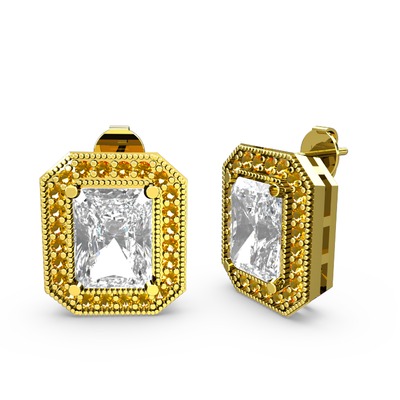 Beyaz zirkon ve sitrin 14 ayar altın küpe