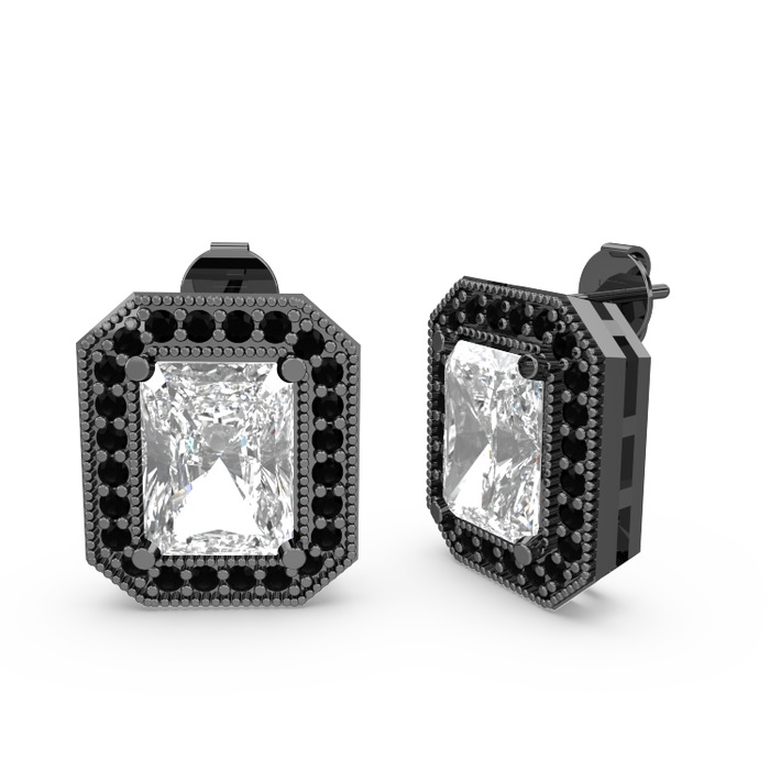 Beyaz zirkon ve siyah zirkon 925 ayar siyah rodyum kaplama gümüş küpe