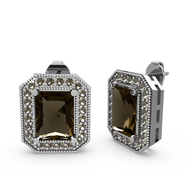 Dumanlı kuvars 14 ayar beyaz altın küpe