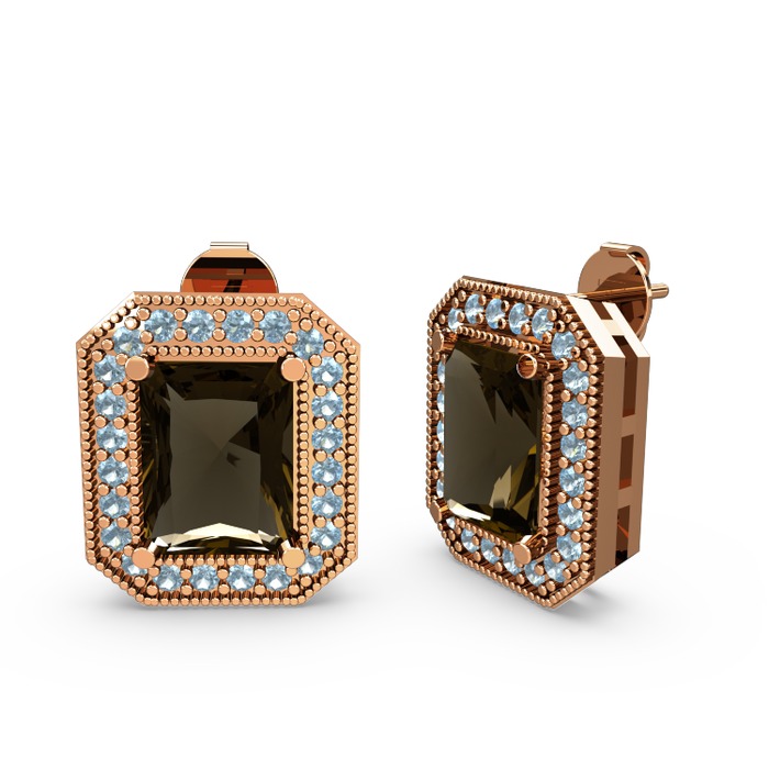 Dumanlı kuvars ve akuamarin 8 ayar rose altın küpe