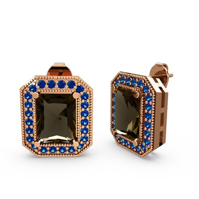Dumanlı kuvars ve lab safir 8 ayar rose altın küpe