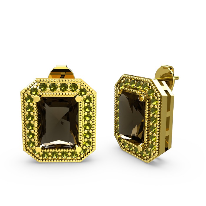 Dumanlı kuvars ve peridot 14 ayar altın küpe