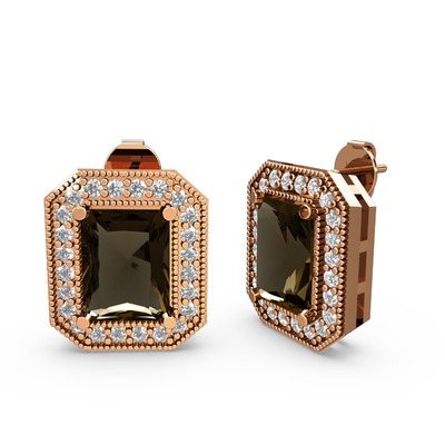 Dumanlı kuvars ve pırlanta 925 ayar rose altın kaplama gümüş küpe (0.506 karat)