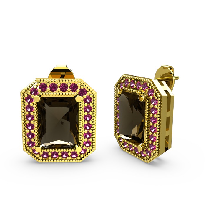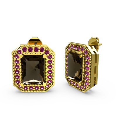 Dumanlı kuvars ve rodolit garnet 925 ayar altın kaplama gümüş küpe
