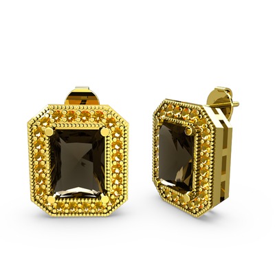 Dumanlı kuvars ve sitrin 14 ayar altın küpe