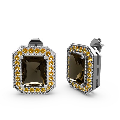 Dumanlı kuvars ve sitrin 14 ayar beyaz altın küpe