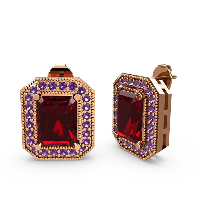 Garnet ve ametist 14 ayar rose altın küpe