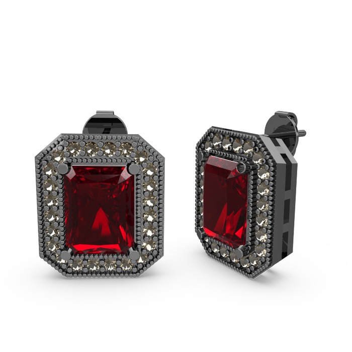 Garnet ve dumanlı kuvars 925 ayar siyah rodyum kaplama gümüş küpe