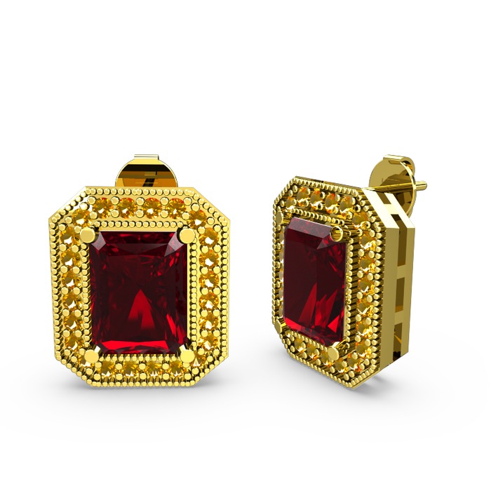 Garnet ve sitrin 925 ayar altın kaplama gümüş küpe