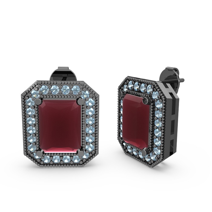 Kök yakut ve akuamarin 925 ayar siyah rodyum kaplama gümüş küpe