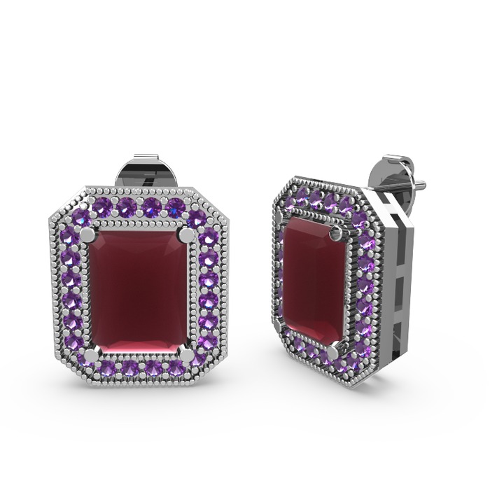 Kök yakut ve ametist 18 ayar beyaz altın küpe
