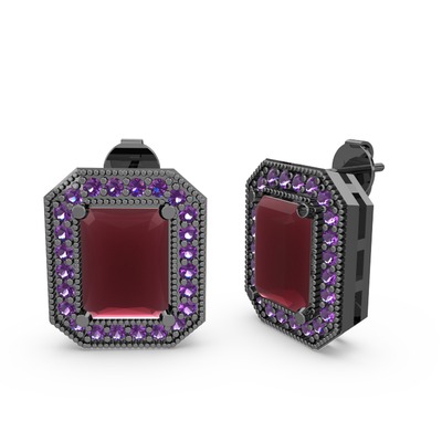 Kök yakut ve ametist 925 ayar siyah rodyum kaplama gümüş küpe