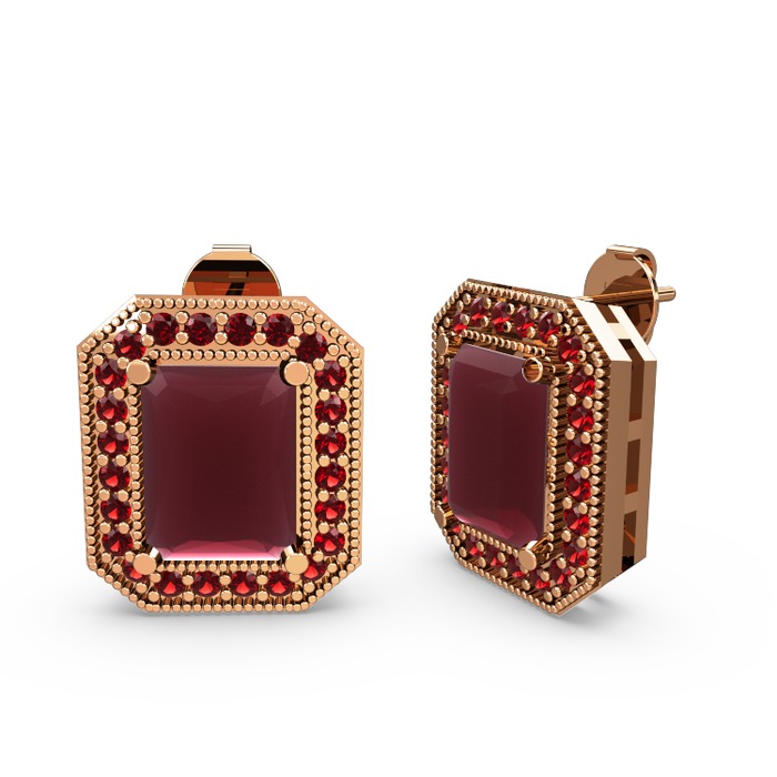 Kök yakut ve garnet 14 ayar rose altın küpe