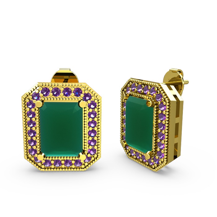 Kök zümrüt ve ametist 18 ayar altın küpe