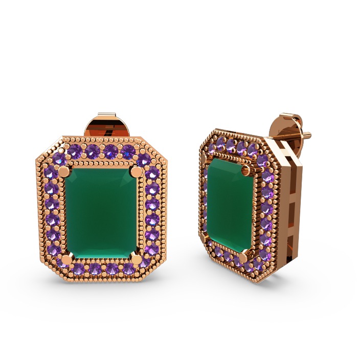 Kök zümrüt ve ametist 18 ayar rose altın küpe