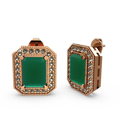 Kök zümrüt ve dumanlı kuvars 18 ayar rose altın küpe