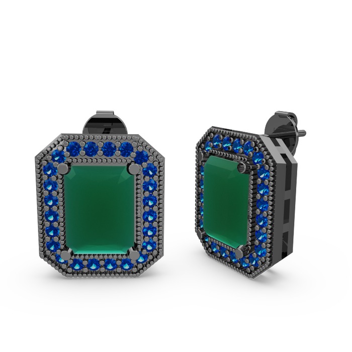 Kök zümrüt ve lab safir 925 ayar siyah rodyum kaplama gümüş küpe
