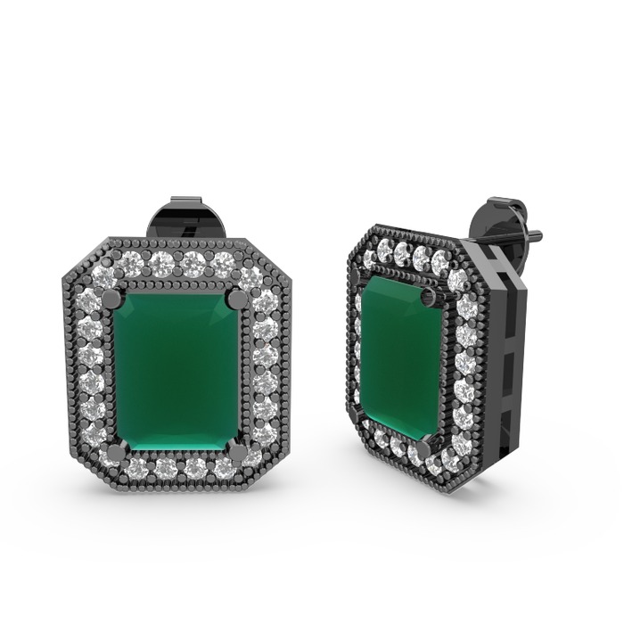 Kök zümrüt ve pırlanta 925 ayar siyah rodyum kaplama gümüş küpe (0.506 karat)