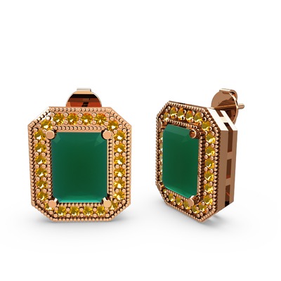 Kök zümrüt ve sitrin 18 ayar rose altın küpe