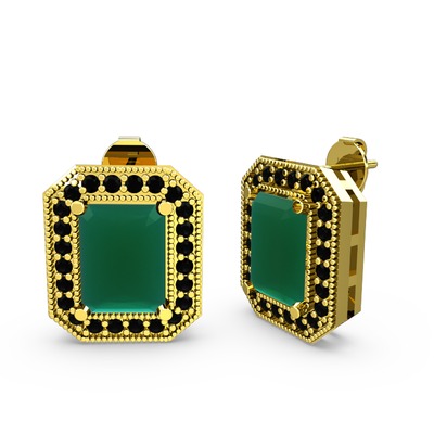 Kök zümrüt ve siyah zirkon 18 ayar altın küpe