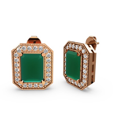Kök zümrüt ve swarovski 8 ayar rose altın küpe