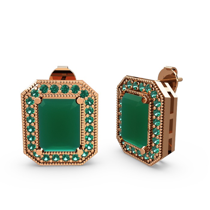 Kök zümrüt ve yeşil kuvars 925 ayar rose altın kaplama gümüş küpe