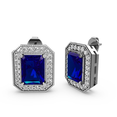 Lab safir ve pırlanta 14 ayar beyaz altın küpe (0.506 karat)