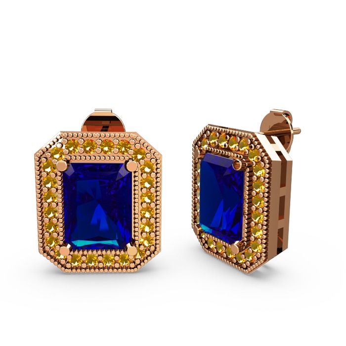 Lab safir ve sitrin 8 ayar rose altın küpe
