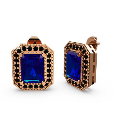 Lab safir ve siyah zirkon 8 ayar rose altın küpe