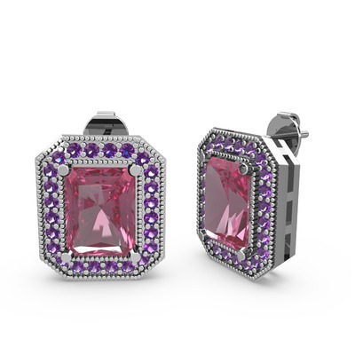 Pembe kuvars ve ametist 925 ayar gümüş küpe