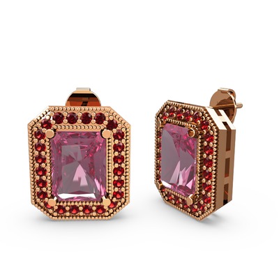 Pembe kuvars ve garnet 18 ayar rose altın küpe