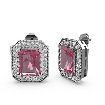 Pembe kuvars ve pırlanta 925 ayar gümüş küpe (0.506 karat)