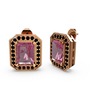 Pembe kuvars ve siyah zirkon 14 ayar rose altın küpe