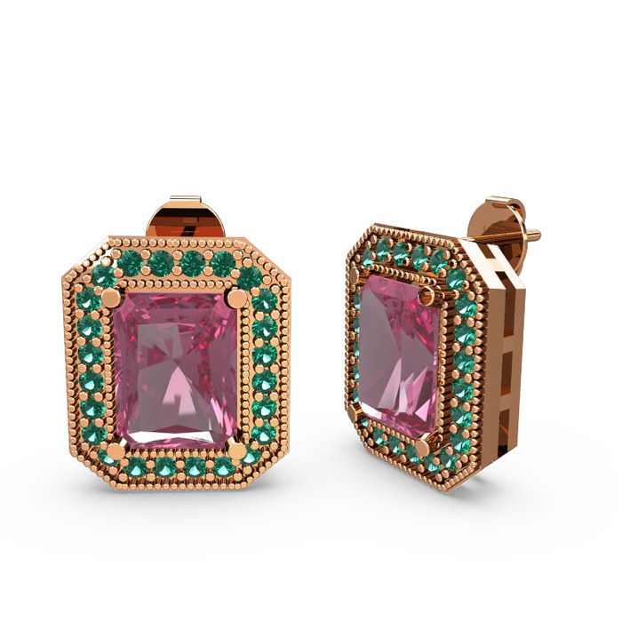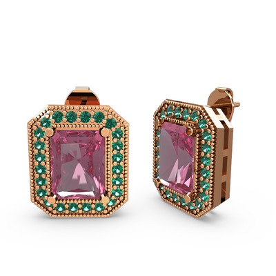 Pembe kuvars ve yeşil kuvars 8 ayar rose altın küpe