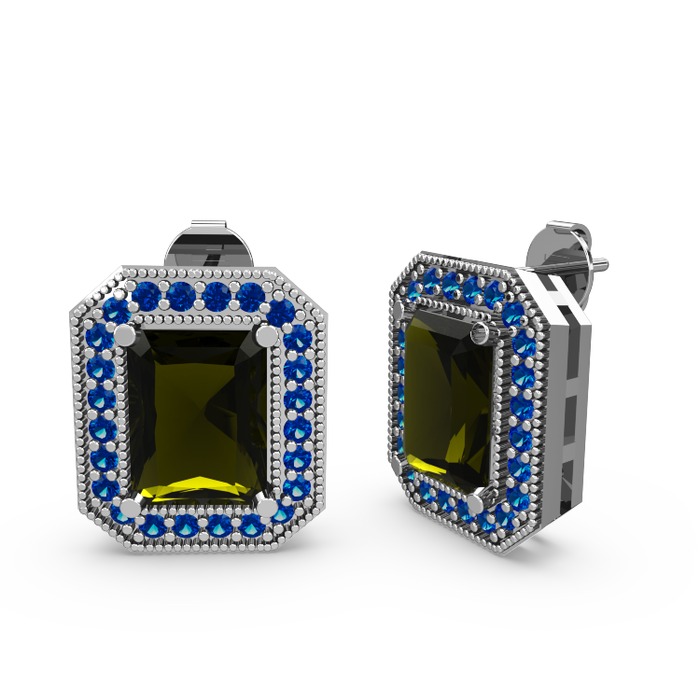Peridot ve lab safir 14 ayar beyaz altın küpe