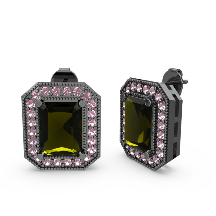 Peridot ve pembe kuvars 925 ayar siyah rodyum kaplama gümüş küpe