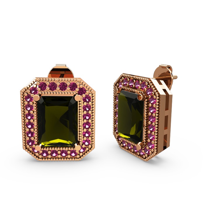 Peridot ve rodolit garnet 925 ayar rose altın kaplama gümüş küpe