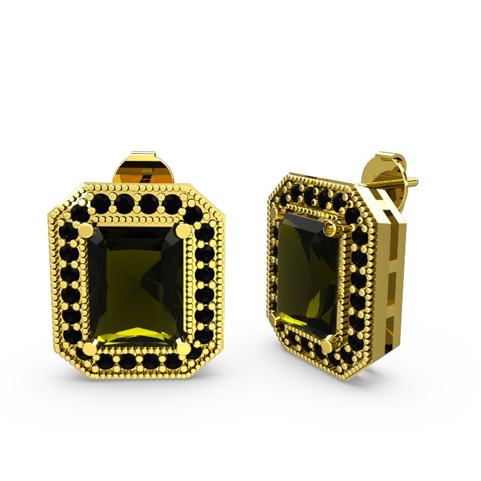 Peridot ve siyah zirkon 8 ayar altın küpe