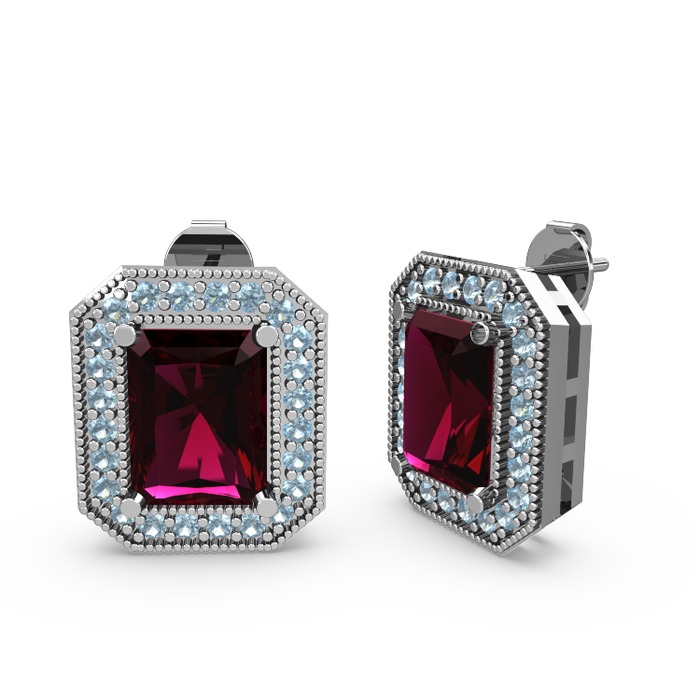 Rodolit garnet ve akuamarin 18 ayar beyaz altın küpe