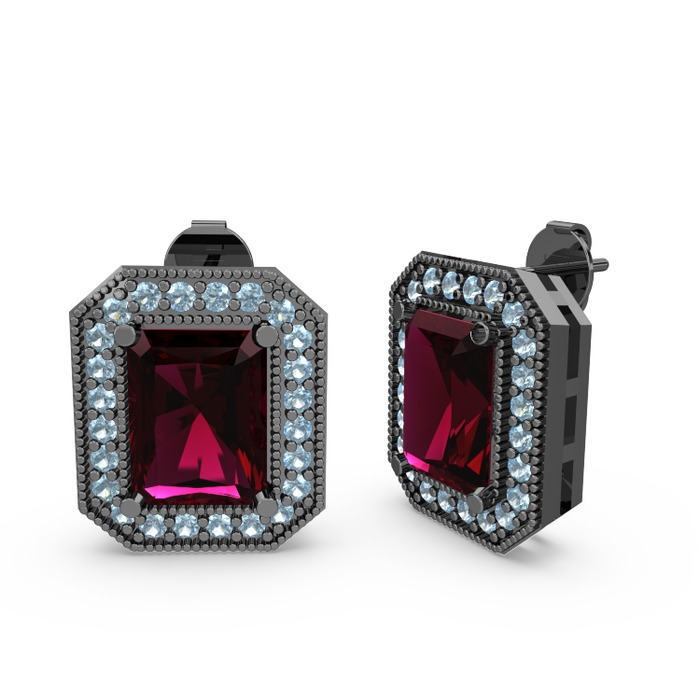 Rodolit garnet ve akuamarin 925 ayar siyah rodyum kaplama gümüş küpe