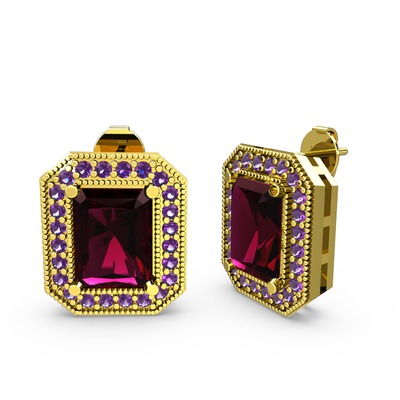 Rodolit garnet ve ametist 14 ayar altın küpe