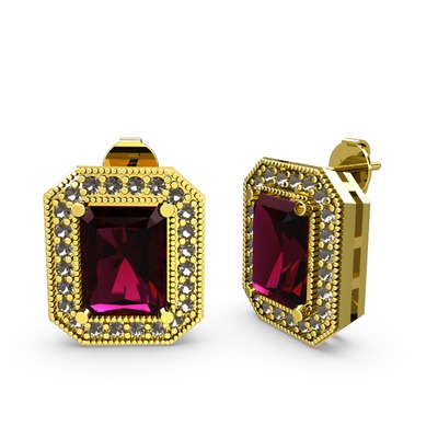 Rodolit garnet ve dumanlı kuvars 8 ayar altın küpe
