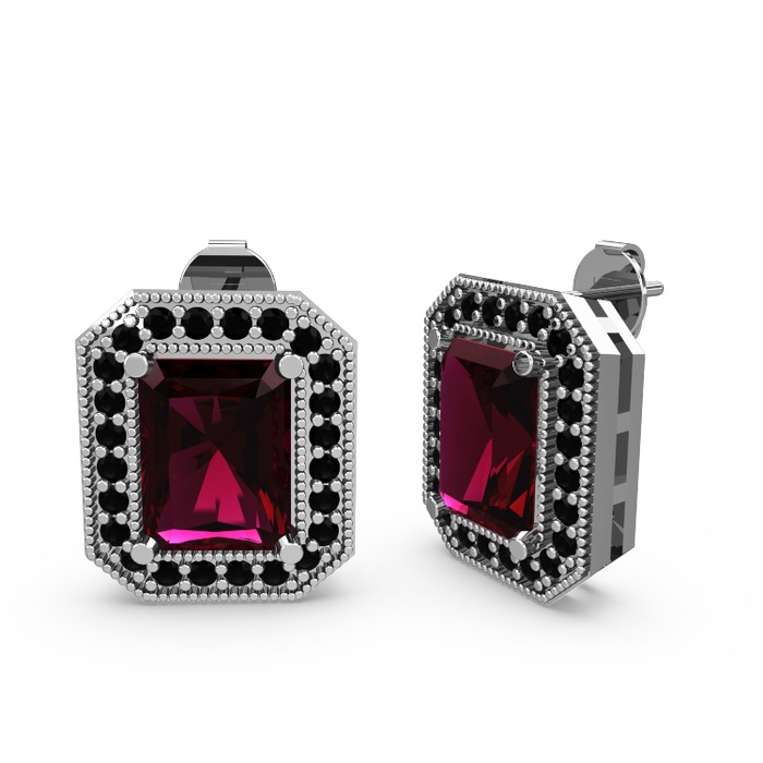 Rodolit garnet ve siyah zirkon 18 ayar beyaz altın küpe