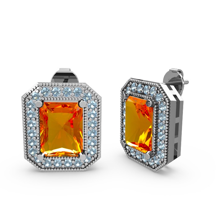 Sitrin ve akuamarin 8 ayar beyaz altın küpe