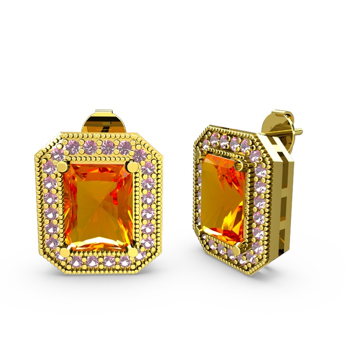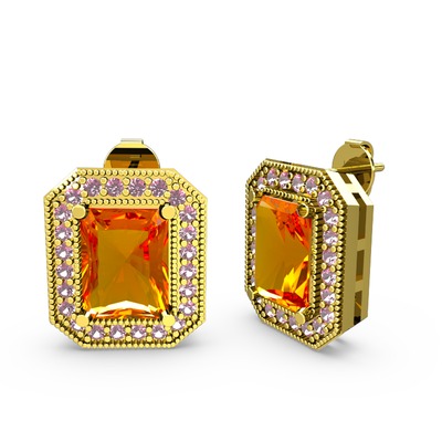 Sitrin ve pembe kuvars 8 ayar altın küpe