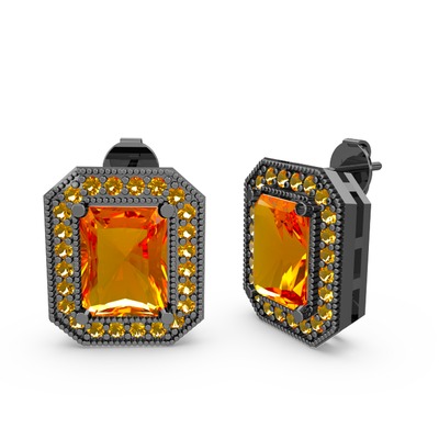 Sitrin 925 ayar siyah rodyum kaplama gümüş küpe