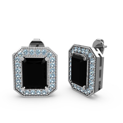Siyah zirkon ve akuamarin 14 ayar beyaz altın küpe